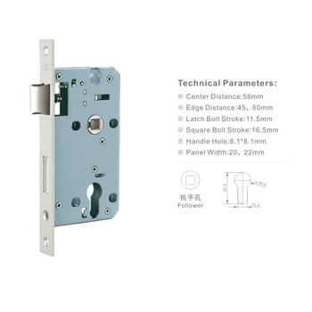 Cerradura de puerta con mortaja de acero inoxidable de 5845 mm de distancia, cuerpo de cerradura con alta seguridad estándar